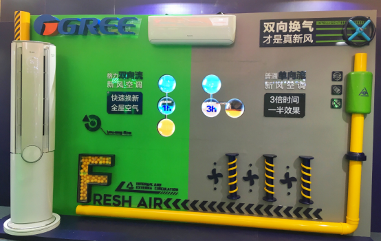“格力空氣G密所”展示的格力雙向流新風換氣技術則創(chuàng)新突破了行業(yè)技術瓶頸——它可以模擬人體呼吸方式,主動“呼”出室內(nèi)多余的CO2和含有甲醛的污濁空氣,同時“吸”入室外新風,通過“呼”與“吸”雙向渠道完成室內(nèi)空氣換新,打造清新呼吸環(huán)境。此外,格力新風空調(diào)還內(nèi)置了HEPA過濾網(wǎng),可以有效過濾掉室外新風中的PM2.5等顆粒污染物,進一步保證呼吸健康。