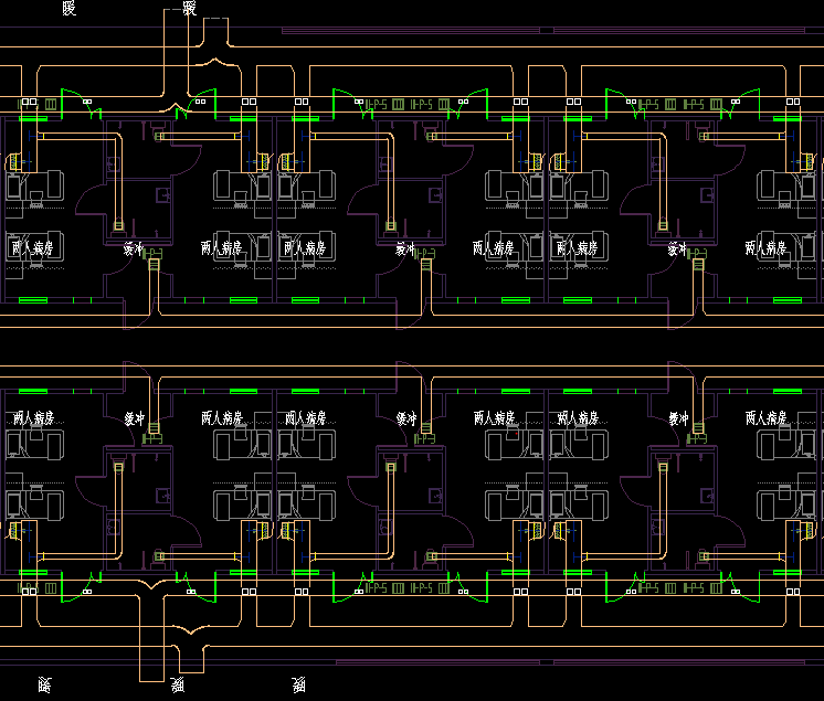2. 醫(yī)護區(qū)可分潔凈區(qū)(含中央潔凈通道及其相連通的潔凈房間)和半污染區(qū)(通向隔離病房的走道及連通的房間),保證氣流從清潔區(qū)→半污染區(qū)流動。